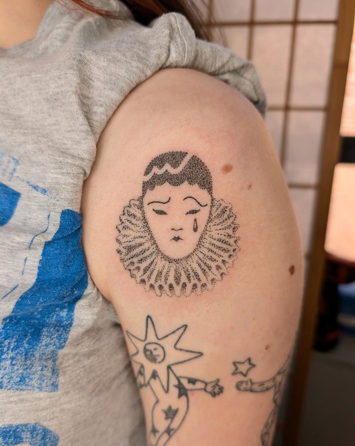 Below are just a few tattoo highlights from recently + a couple unused pierrot-style clowns just because I think they’re nice to look at, too!